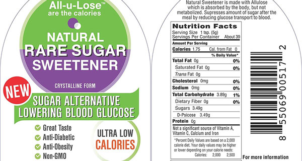 All-u-Lose Natural Rare Sugar Sweetener, Crystalline Allulose